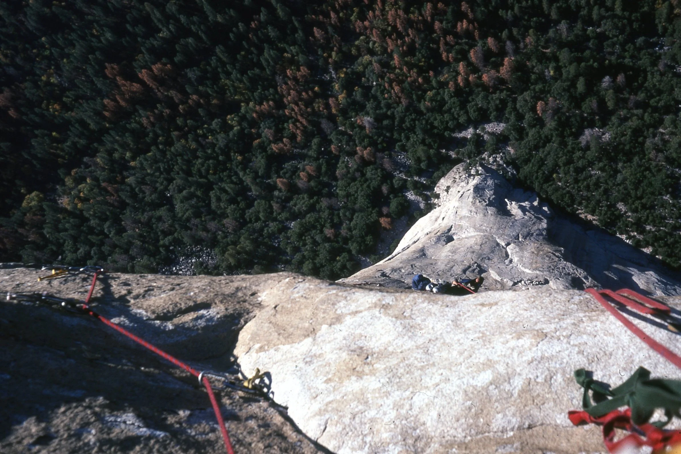 Looking down from Chicken Head Ledge, The Shield Wall, El Capitan, Yosemite, California. 1979