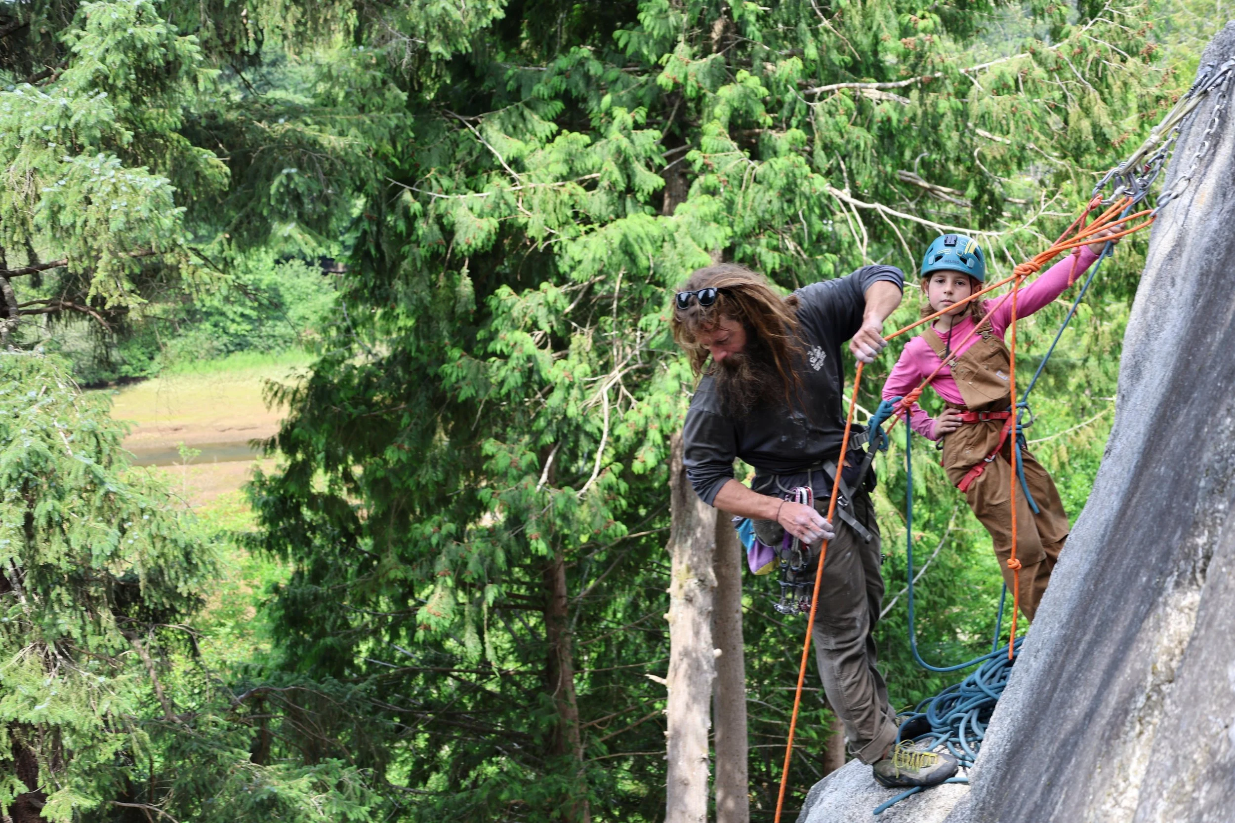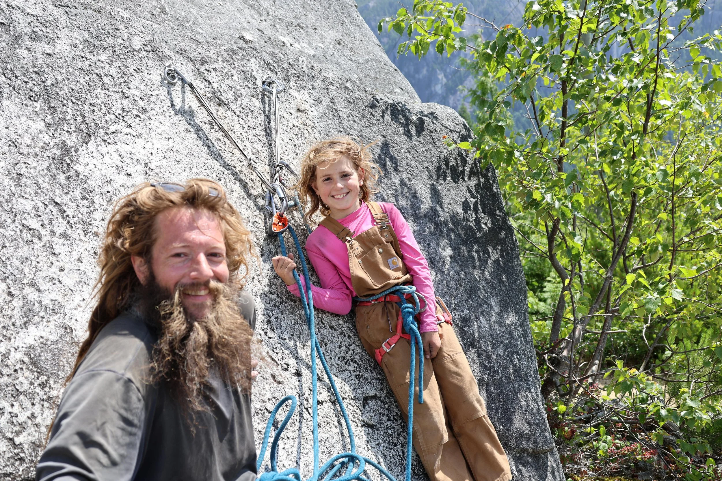 Dad Dave Goodwyn and Reagan. The Zip. Smoke Bluffs, Squamish, BC. July 2025. Photo: Peder Ourom