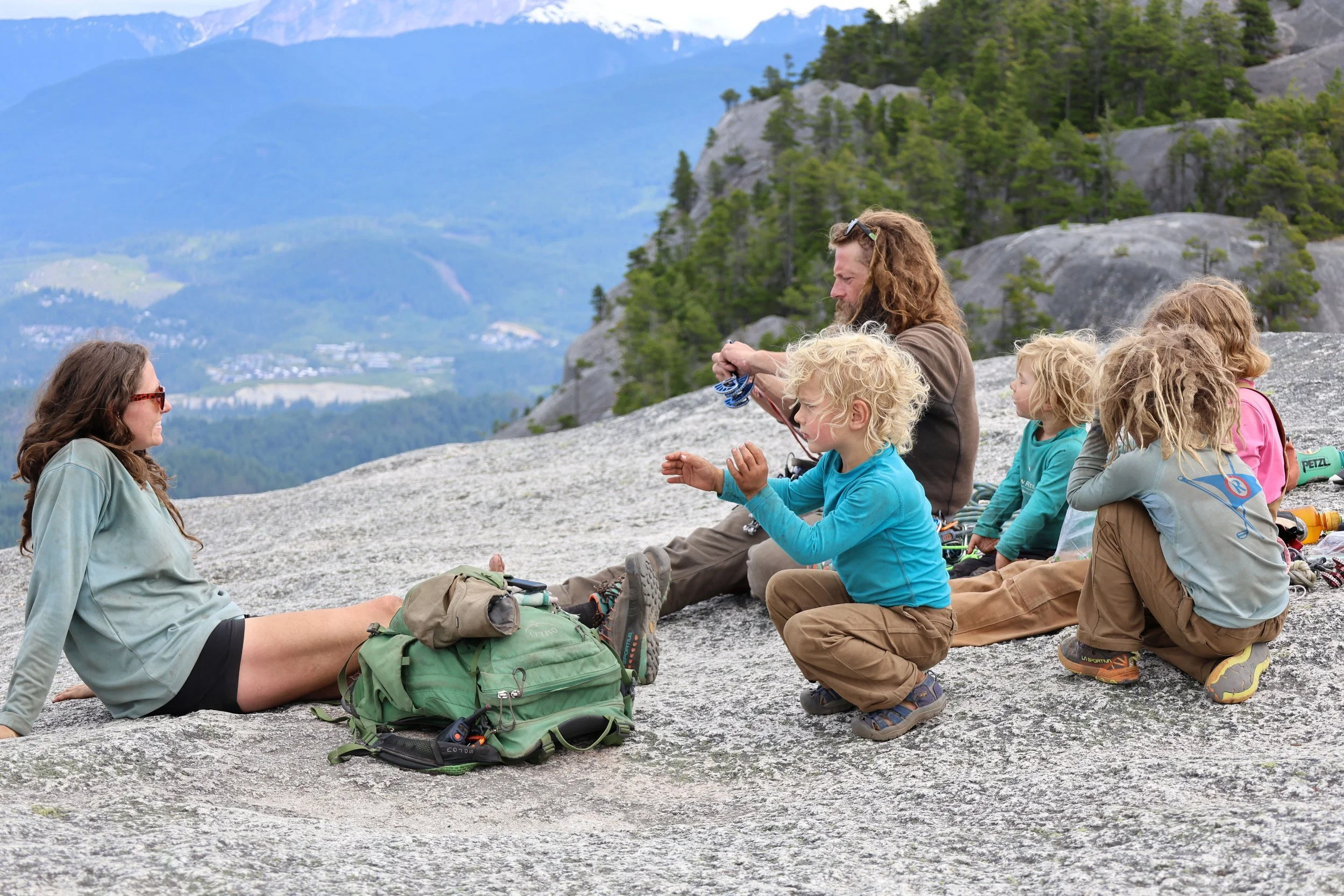 The focus and enthusiasm that parents, Dave and Shelby, provide as their van full of energy spills out and they head up the trail for their next adventure, is a beautiful sight. Slack lining and playing hacky sac and hiking up the Chief to congratulate Dave and Reagan on the summit are also special moments that are equally valued.